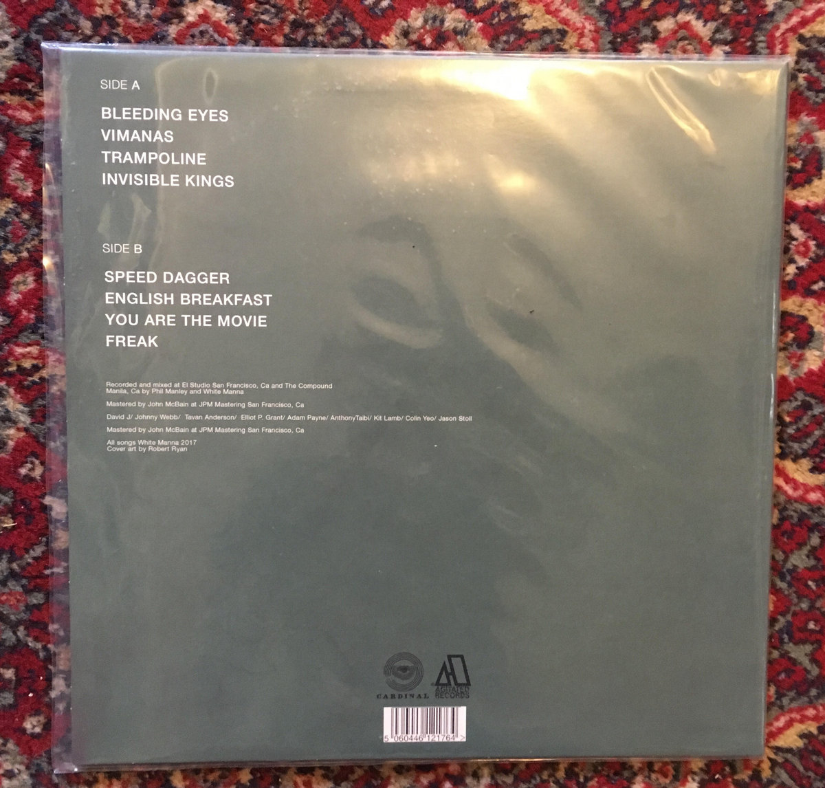 and starts very abrupt and chaotic, twists your head around a bit, with a very psychedelic vocal, like a dark nightmare. Trippy stuff. Flip the record over to kick things off with “Speed Dagger,” which you might expect to be a super fast track. It’s actually pretty mid-paced and very 60s inspired but in a heavy way! “English Breakfast” keeps it psychedelic with a sort of repeated start type of groove. “You Are The Movie” has a classic stoned White Manna sound, like some of their earlier stuff. “Freak” closes this latest psychedelic trip in a high energy fashion.